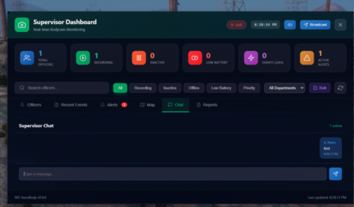 - **Bodycam Revocation** — Supervisors can permanently revoke bodycam access; restored manually from the dashboard