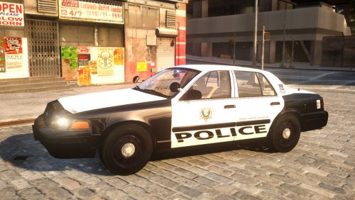 A 2008 LVMPD Slicktop CVPI featuring high quality liveries made by sixium.