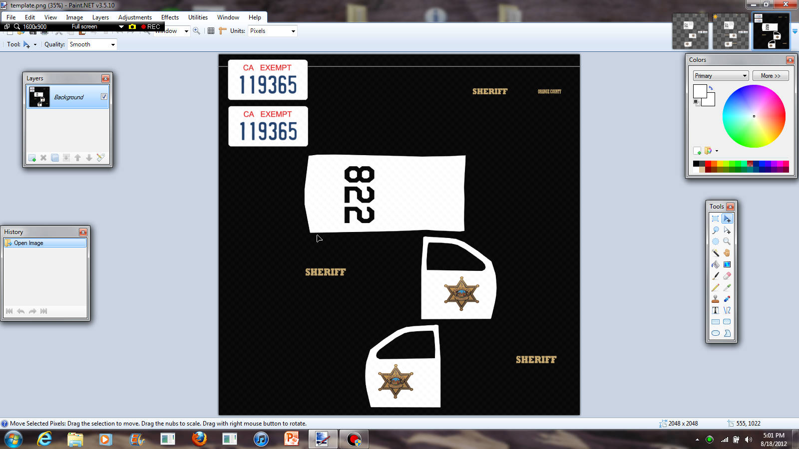 For the charger, I recommend you use a Miami Police charger and edit your lightbar glass color so it matches the OCSD's lightbar.