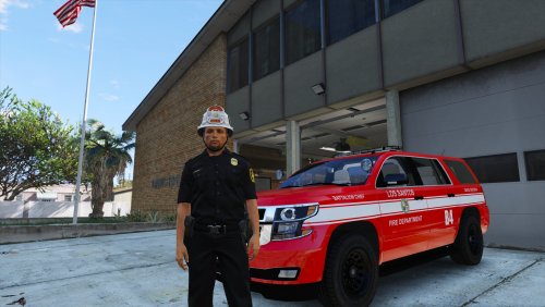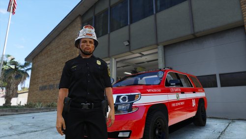 This guy is textured after actual LAFD Battalion Chiefs, as best as I could get by using images from google and dealing with model restrictions. I actually really wanted to give this guy a bunker/turnout coat, but after several hours of attempting and failing at using zmodeler, I gave up. Maybe someone out there can add that, or else either school me on how to do it or point me in the direction of a good tutorial on how to edit GTA V's peds.