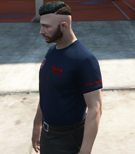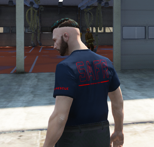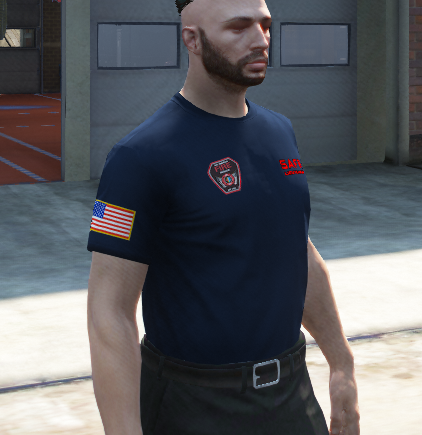 San Andreas Fire Rescue T shirt with 4 tectures with different ranks within the department from Firefighter to Fire Chief
