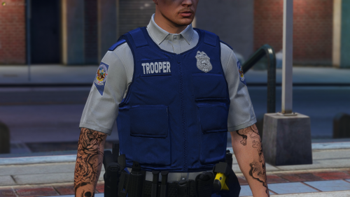 BASE GAME GTA FILES. EUP Team did not create this shirt. I took the decals from the open collared shirt and put them on the closed collared shirt. The bowtie was another model I made and is NOT included. This is for EUP developers or server owners wanting to use a short sleeved police shirt with the collar closed.