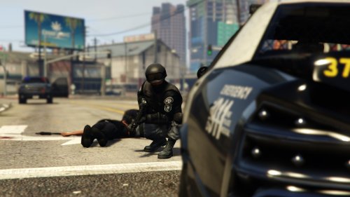 This texture mod is a Flashpoint inspired mod to change the LSPD SWAT to LSPD SRU. I have changed the pants color to the light, blue/gray, color from the show, and the black top from season two. I've also added SRU patches to the arms, and instead of the "MET" patch from the show, added a LSPD logo on the shoulder to keep it lore friendly.