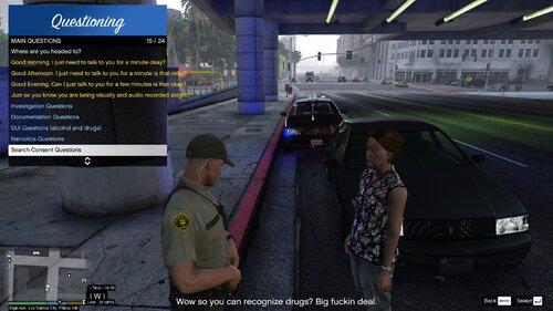 So this pack contains more realistic dialogue between law enforcement and civilians in Los Santos. Plenty of F bombs included from both parties. 🙂Also many different options and also I created a section just for mental health issues as some callout packs now feature mental health callouts. Which goes hand in hand with my San Andreas CompuLite Charges and Citations.