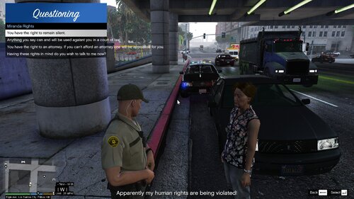 Another piece of code (That I rewrote) is Miranda Rights. You can now read arrestee's Miranda Rights.
