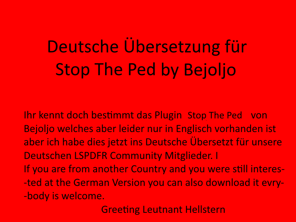 German Translation for Stop The Ped by Leutnant Hellstern !! High Quality !!