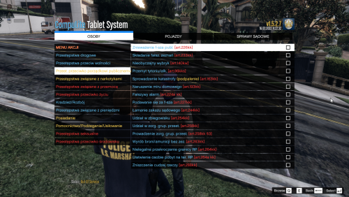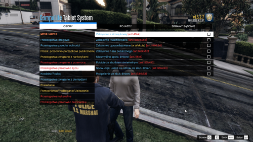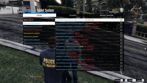 - W mojej wersji tego pluginu nie ma żadnych wymyślonych zarzutów typu "palenie gumy", starałem się, aby wszystkie miały taką nazwę jak w Polskim prawie (choć nie zawsze było to możliwe);