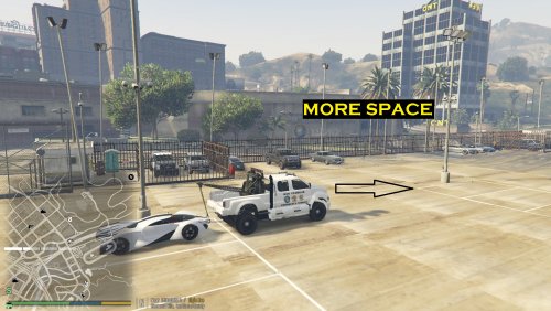 This mod is geared toward LSPDFR users. There aren't really any dedicated impound location so I decided to expand on my other maps and create one in the Vinewood Hills area. This one is very different though. As you may see, it is a lot more spacious and can accommodate more vehicles than ever. Since the mod is spacious, it is more accessible and makes towing easier. Just pull a vehicle into a spot, unhook and you're done. No more having to finagle a vehicle into a spot or backing up constantly. It includes a gas station, employee parking, and even space for commercial vehicles to be placed when towed(rear of mod).