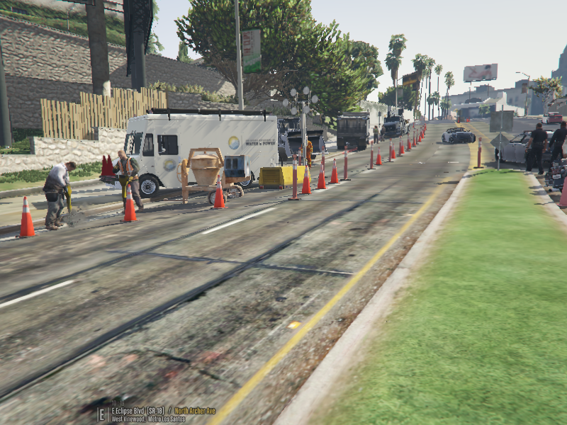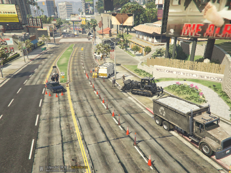 This is a Roadworks Map the location is in West Vinewood and goes all the way down to The Last Train In Los Santos Café. One lane has been closed due to Construction. As we know LS traffic is bad but they should follow the right way. they may get through but I have made it so they will move back into the 'open' lane.