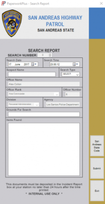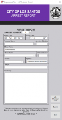 PaperworkPlus is a Windows Forms Application written in C#. This program is designed to add a whole new level of realism to your game! If you want to experience the role of a police officer truly, you will need to deal with the paperwork element of duty service!