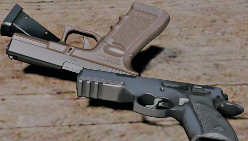 Version 1.1 of 'Law Enforcement Service Weapons' includes three handguns, a SIG Sauer P320 Compact, a CZ-75 SP-01 and a Glock 17 Gen 3, all of them were brought to life by Jridah.