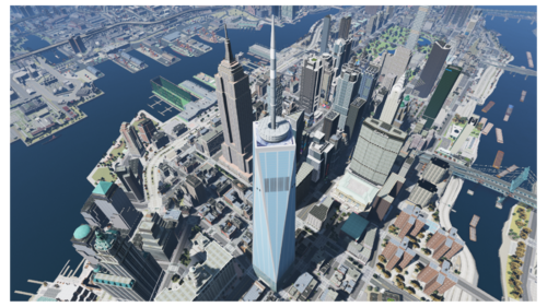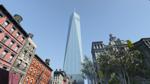 Need to decorate your game in New York in recent version ? Here is a remastered version of One World Trade Center by GTA Belgium, thanks to him we can have a replica of this tower in this game ! There are some little disturbing texture problems at the antenna, but you hardly see it. ^^