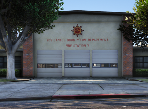 I removed the Light Pole and Fire Hydrant blocking the engine bay at station 7. The Fire station interior in the image is not mine nor do I claim it to be.