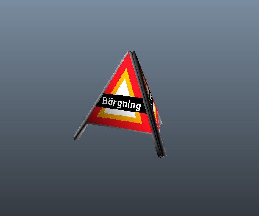 *Warning tent that says "Bärgning"