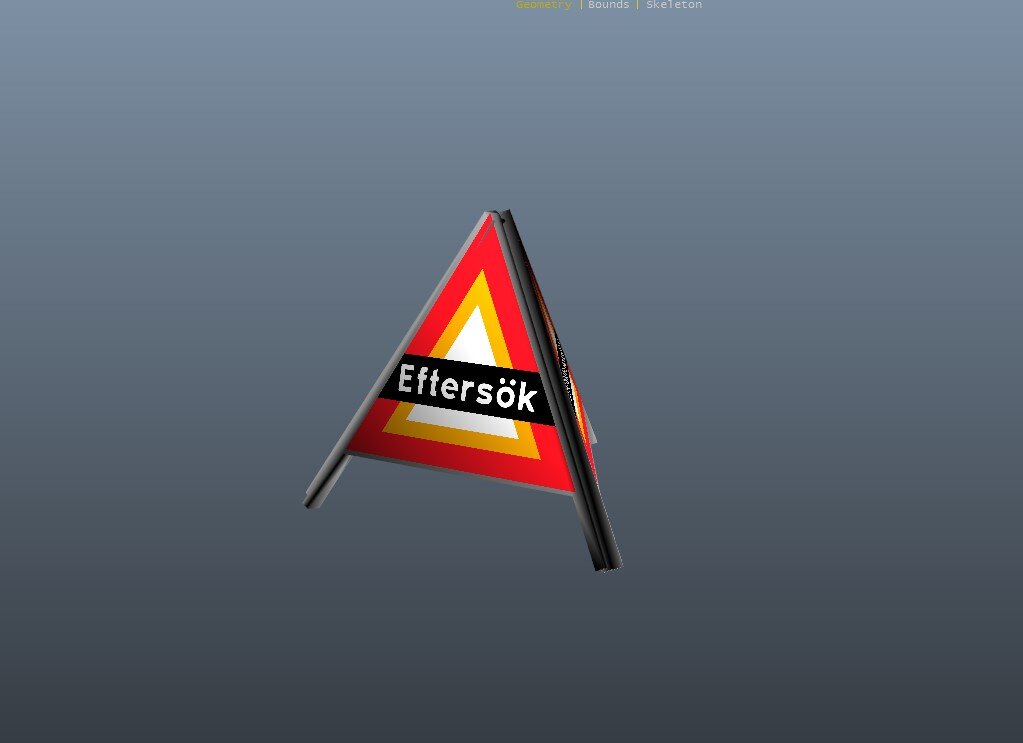-Added warning tent that says "Eftersök"