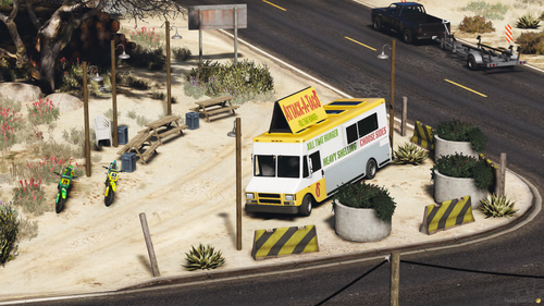 Bring your server’s civilian roleplay to life with this super cool YMAP, featuring a food truck, posts to section off area, chairs, tables, and more!