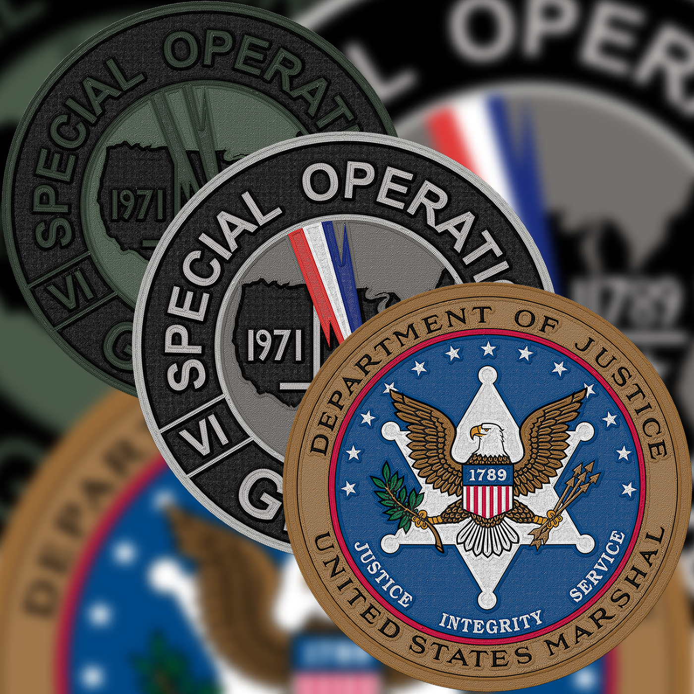 These are a few logos and patches of the USMS. Main logo, 2 SOG logos.