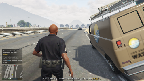 You will be called out to perform a traffic stop on a vehicle that is broadcasting some radio signals without the proper license. Hopefully, you'll be able to have a calm conversation (pressing Y to advance the on-screen subtitled conversation) and convince them to stop broadcasting, but sometimes they will not be so inclined.