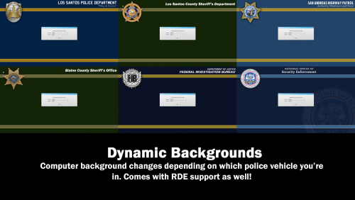 - Dynamic backgrounds! Depending on which police vehicle you're in, you'll get a specialized department background. Comes with RDE support.