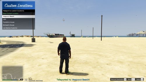 Simply press the menu key (default F4) to begin using GoThere in-game! Use arrow keys to navigate the menu, just as you would with any other menu. Custom locations can be added in game or manually by modifying the CustomLocations.xml file found in Grand Theft Auto V/Plugins/GoThere. A sample location has been provided within the document that you may use as a template.