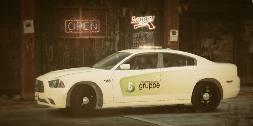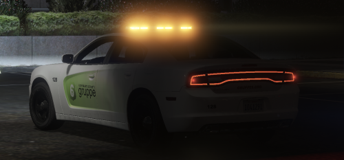 This is a 2014 Dodge Charger for Gruppe 6 security, featuring ELS lighting, 8k textures, amber lighting, takedowns, traffic director, 3 stage lighting, and interior components.