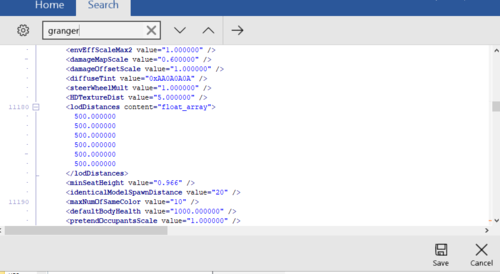 Open it, search for the car name and change all LODS