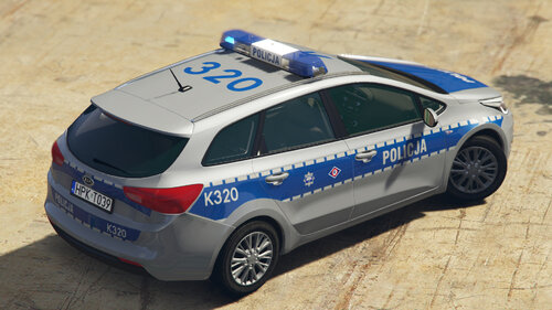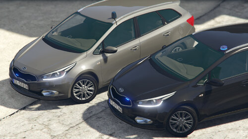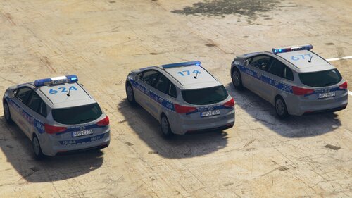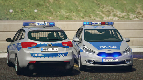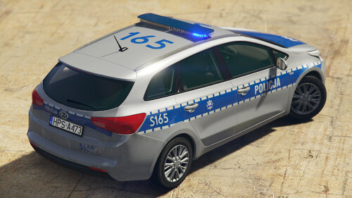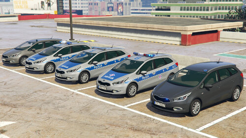 Radiowóz KIA Ceed SW drugiej generacji. Modyfikacja zawiera 5 pojazdów: