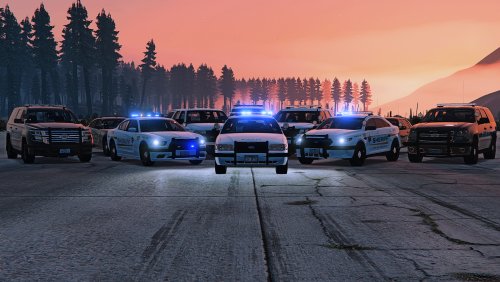There are 13 cars in the pack. Each of them has from 5 to 10 liveries. Basic liveries, K9 unit liveries, gang unit liveries, supervisor liveries, and ghost liveries. Also, some of them have an extra 12 - wraparound pushbar, which you can remove or put on if you want.