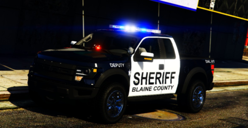 This is a marked Blaine county sheriff dept. 2014 Ford F-150 SVT Raptor and it is a realistic speed as the raptor irl. this took me a little bit. I didn't get the chance to get much interior stuff because all the interiors stuff was not fit for this dev model so I apologize if its not a good car but I did my best.