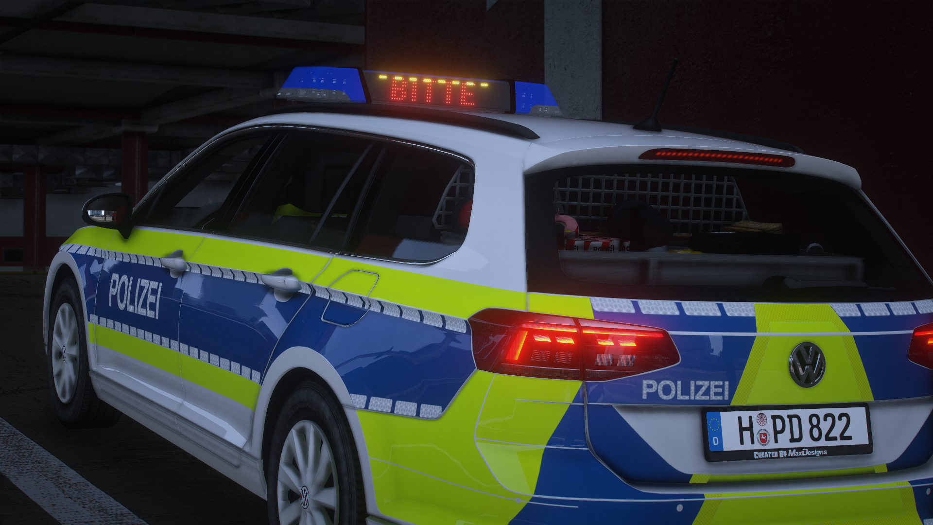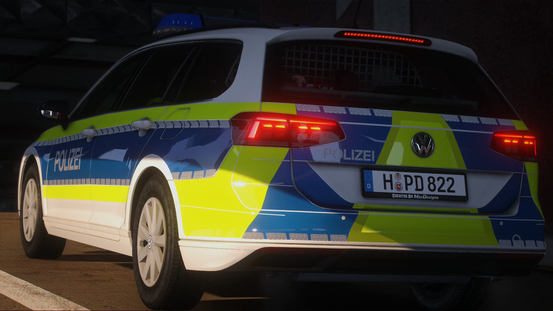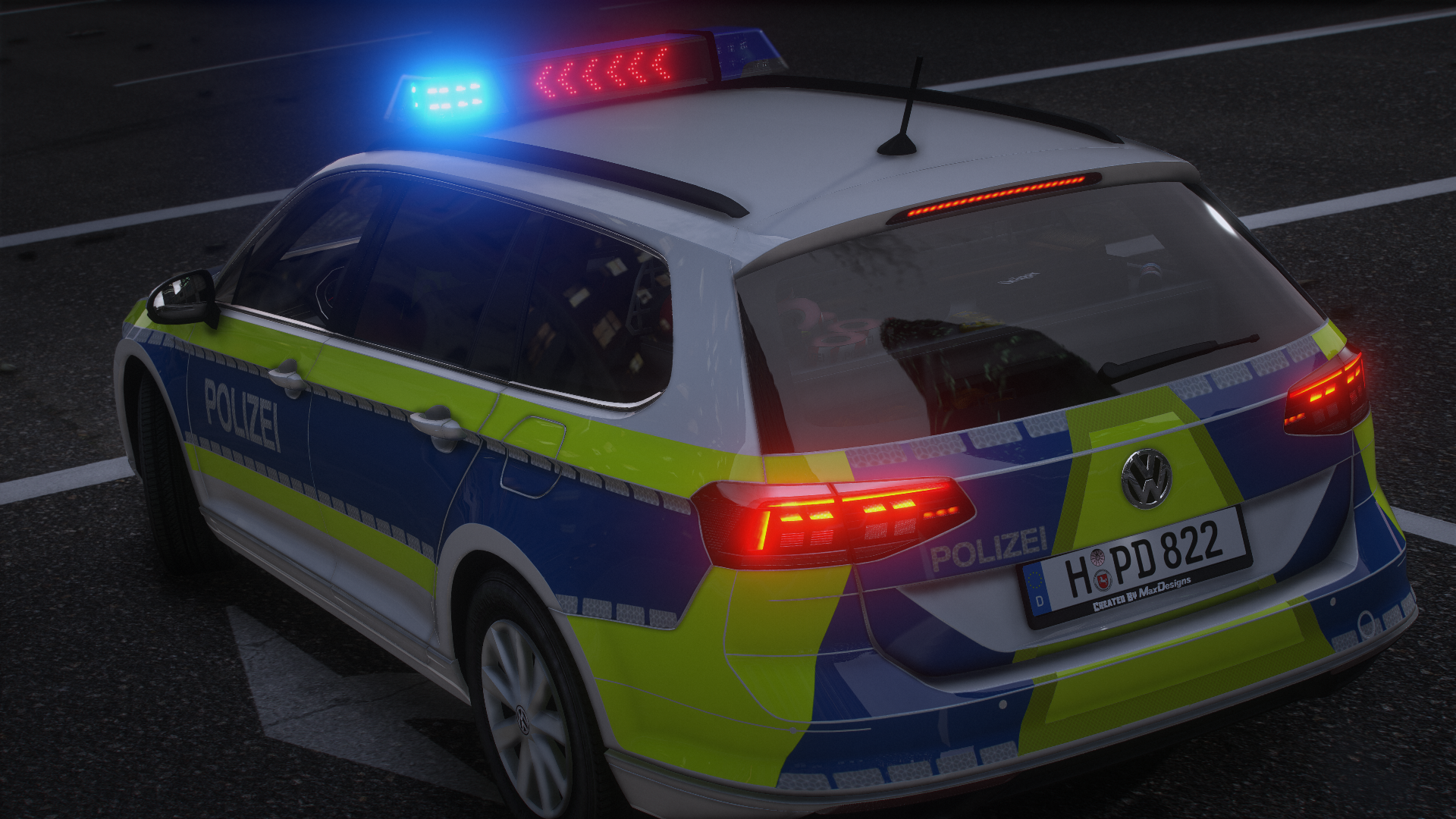 Here is the VW Passat B8 facelift of the Lower Saxony police. It has reflections and many details.