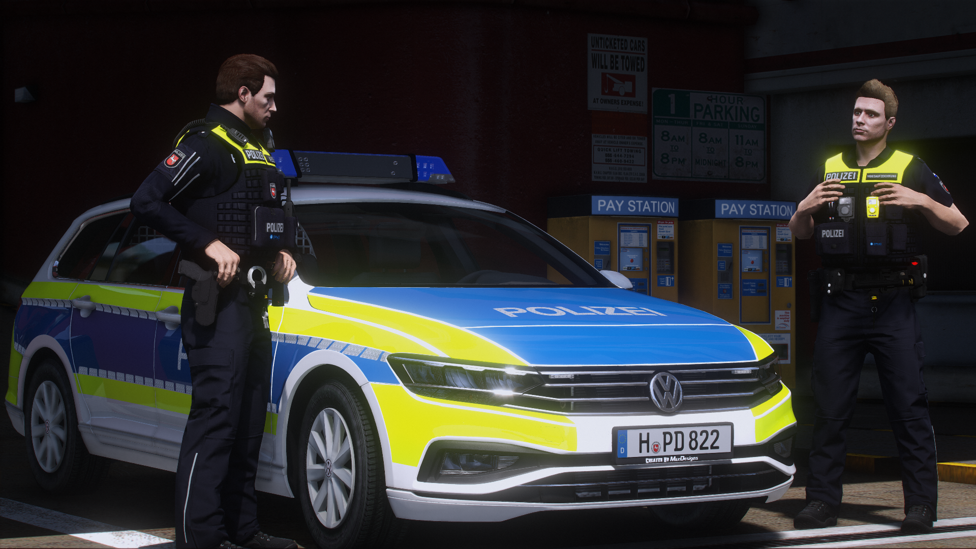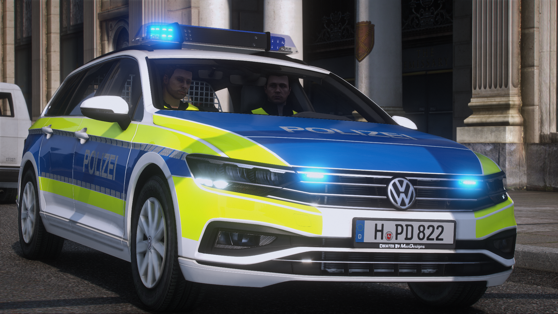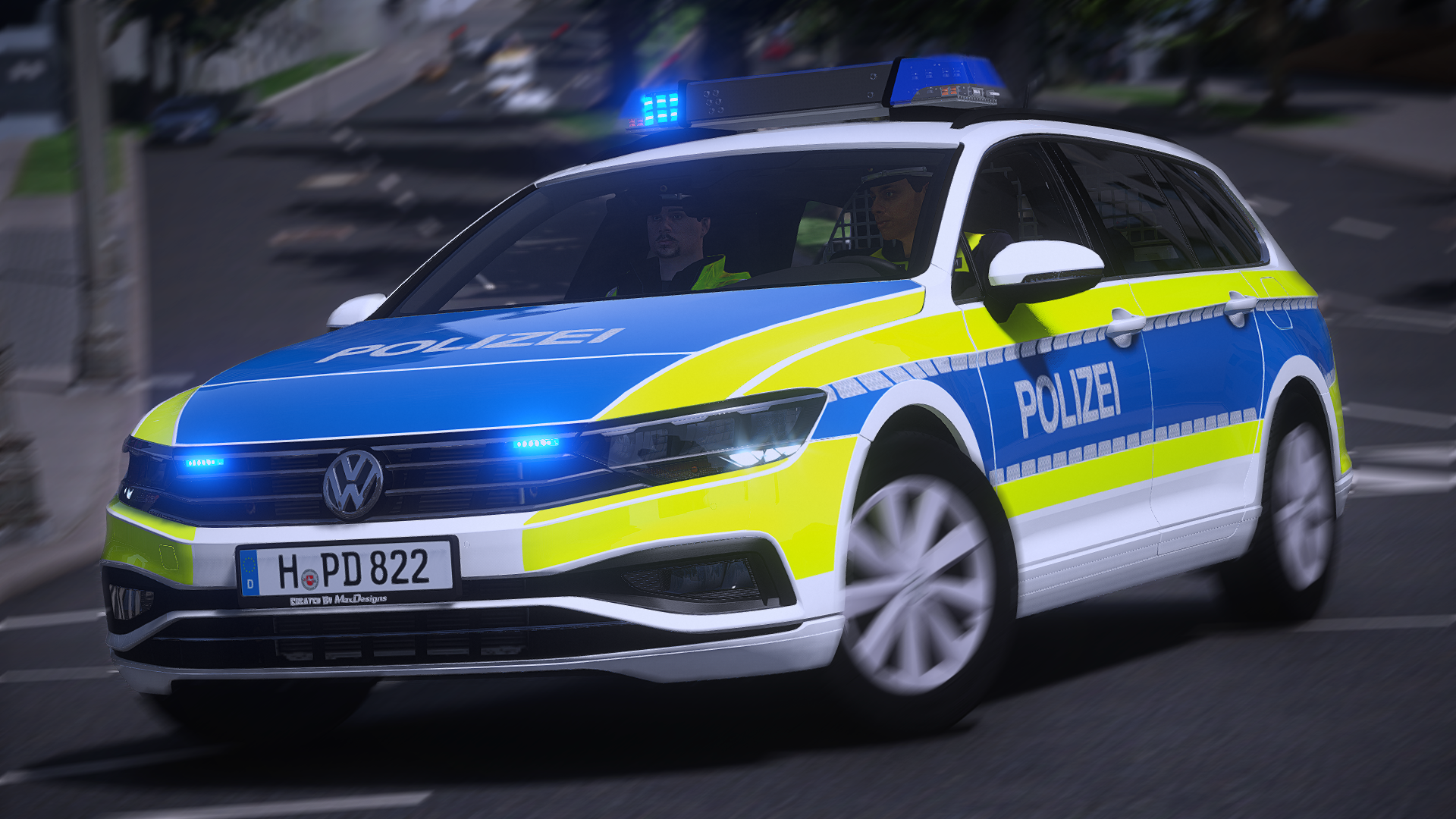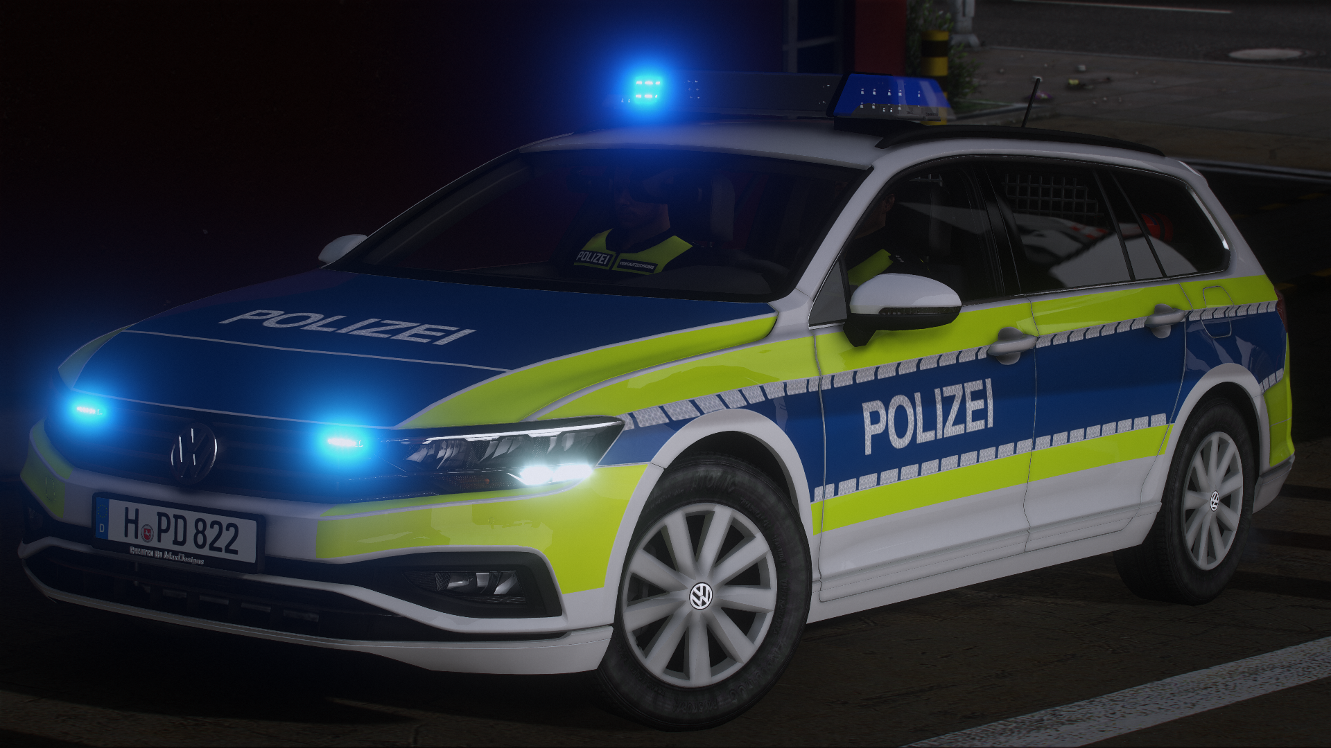 Here is the VW Passat B8 facelift of the Lower Saxony police. It has reflections and many details.