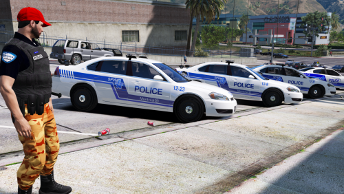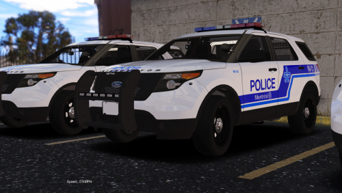 Here is the complete skins pack for the SPVM (Montreal Police), the pack contains multiple liveries for the Crown Vic, the 2014 and 2016 charger, the 2015 Explorer, the 2016 Impala and the FPIS. Each car gets multiple skins with different unit and plate numbers. I've also included the lightbar texture provided by BradM to make the front red and blue, aswell as the window texture for the FPIU as Supervisor.