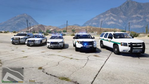 First skin pack for me of local Sheriff's Office. All vehicles use all blue lights, and I tried to find models that were at least reasonably close to the actual light set ups. I have attached links to many of the packs that have models these skins will fit. Special thanks to all of those who put in the effort to create these great models. Some models may have a strong glare or reflection during the day that I usually fix by changing the paint to matte 'Ice White' using the trainer. Some of the vehicles in the screenshots have been changed since they were taken, but you can at least get a general idea of what they look like. Some files are 2K and others are 4K, I mostly use 2K and must not have saved the original 4K versions when I resized the files.