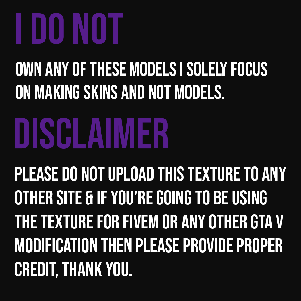 If you're going to repost my skins then be sure to ask ME and no one else for permission first, since I want to know where my skins will be posted.