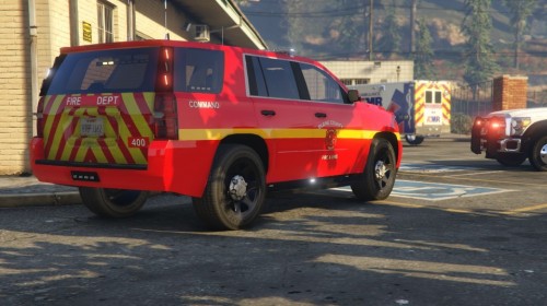 - Added 3 new command car liveries or the 2015 Tahoe, one each for Blaine County Fire & EMS, Los Santos County Medic One and Los Santos County Fire and Rescue (I put my vehicle in the lguard slot, make sure you make the vehicle multi-livery compatible)