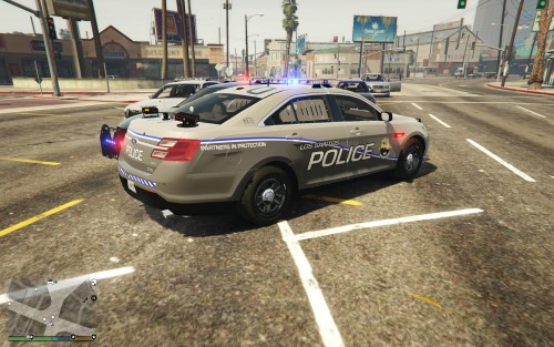 This is another varient to the LSPD of Los Santos. I decided to move away from the black-and-white and move into a customized silver/grey scheme. All textures are custom from me including the LSPD logo in use.