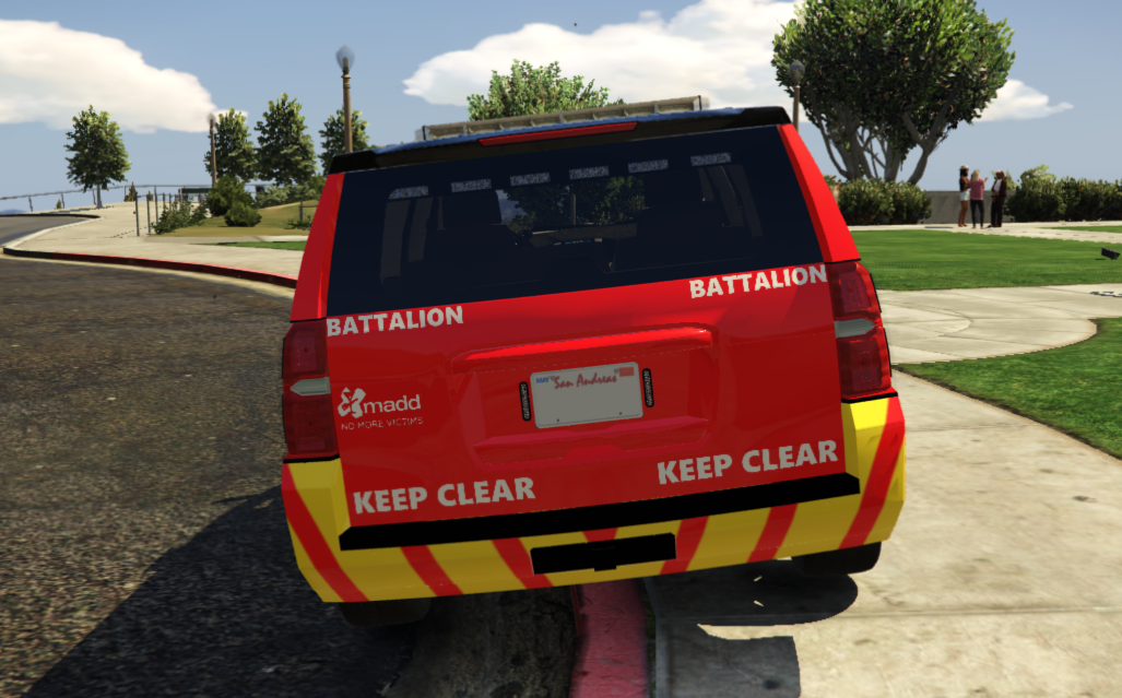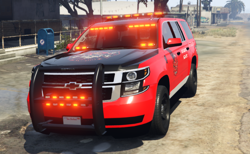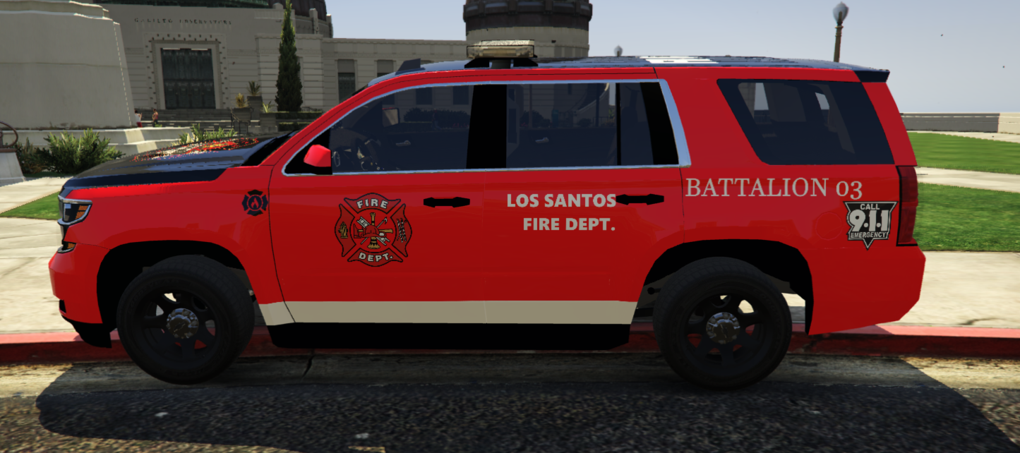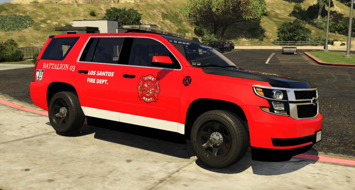 This is a Los Santos Battalion Chief Tahoe. Emergency Lighting textures have all been turned to ALL RED with the owners permission. All you have to do is replace your current .YTD file with the one provided here. Enjoy!