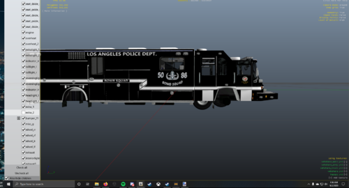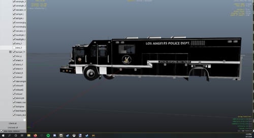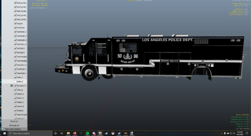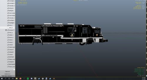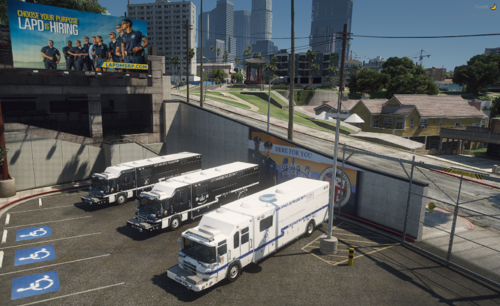 3 liveries for J. Walker's Pierce Quantum Command center. Liveries included are form LAPD SWAT, Bomb Squad, and Underwater dive unit. IRL LAPD uses 2005 Pierce Arrow XTs so this is as close as I could get with the liveries, although there are some differences due to differences in the model. I did not make the model, just the skins.