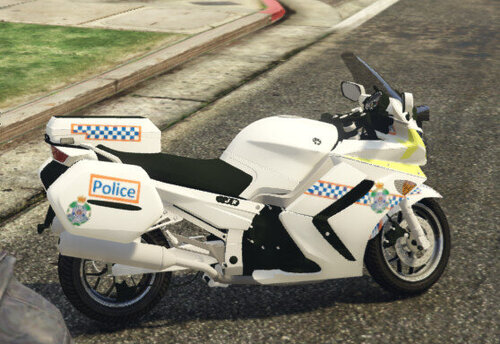 QLD Road Policing Command skin for 2009 yamaha fjr1300: https://www.gta5-mods.com/vehicles/2009-yamaha-fjr1300-w-template