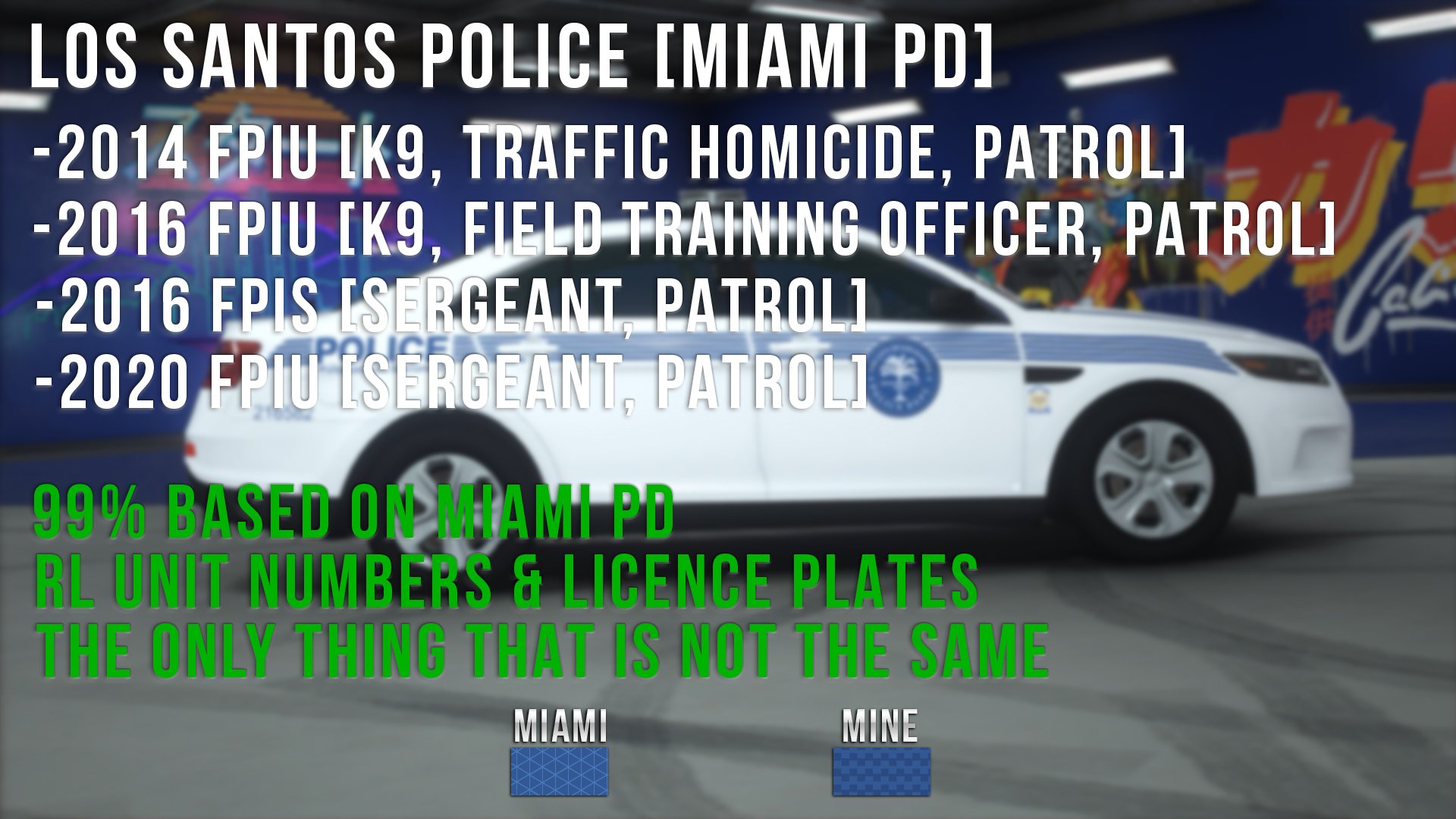 Los Santos Police based on Miami PD using RL unit numbers & licence plates