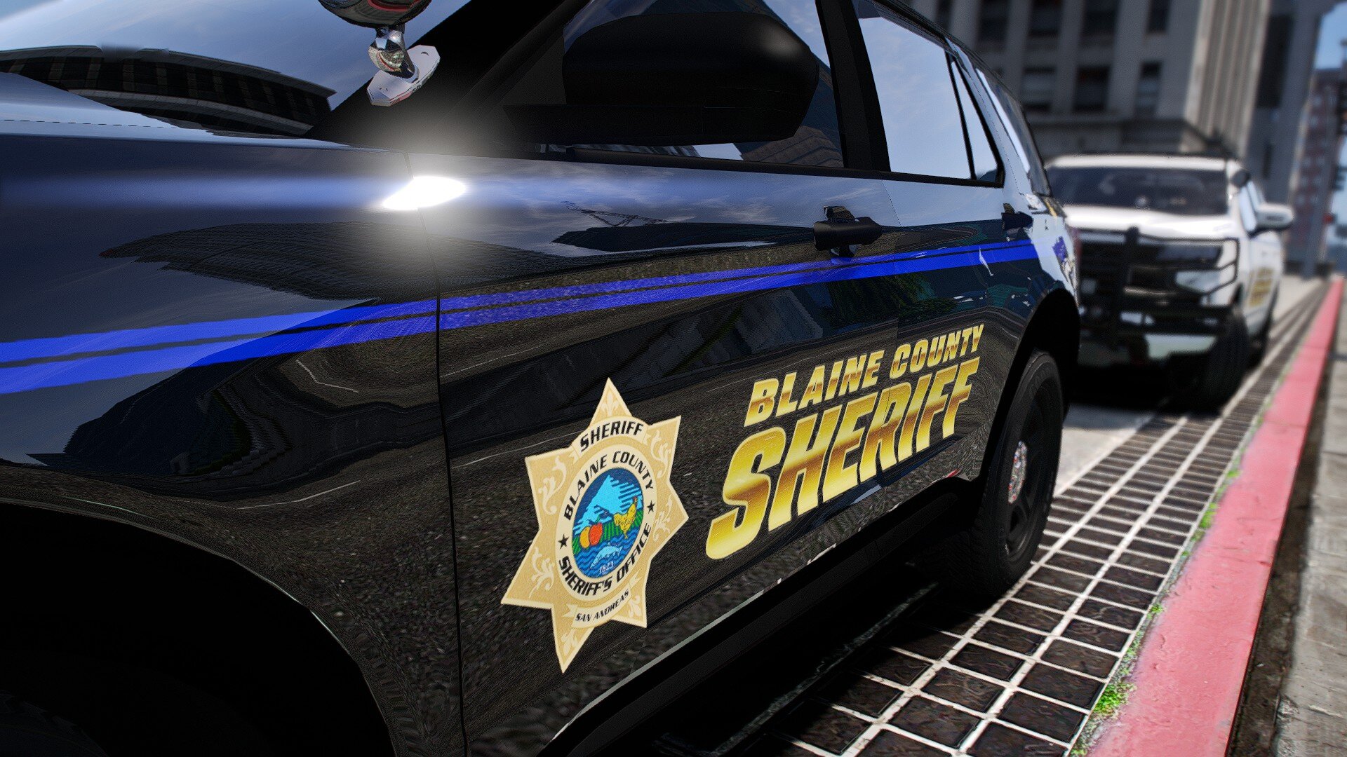Livery for the Blaine County Sheriff's Office. The livery is for the 2020 Ford Explorer and 2021 Chevrolet Tahoe.