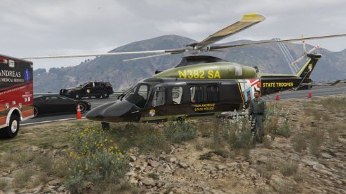 Vehicle Type: PoliceThe MD State Police use the AugustaWestland AW139 for many purposes, including as a medevac & search and recovery chopper. I figured I would give a new look to the Police Maverick in LSPDFR by taking the same model the state police actually use and creating a texture to match existing Maryland-based San Andreas State Police textures. This Texture is meant to go onto SkylineGTRFreak, PNWParksFan, & bobmat4's "AugustaWestland AW139 (LAFD, WestPac, UK, Spain) [Add-On]" file, w