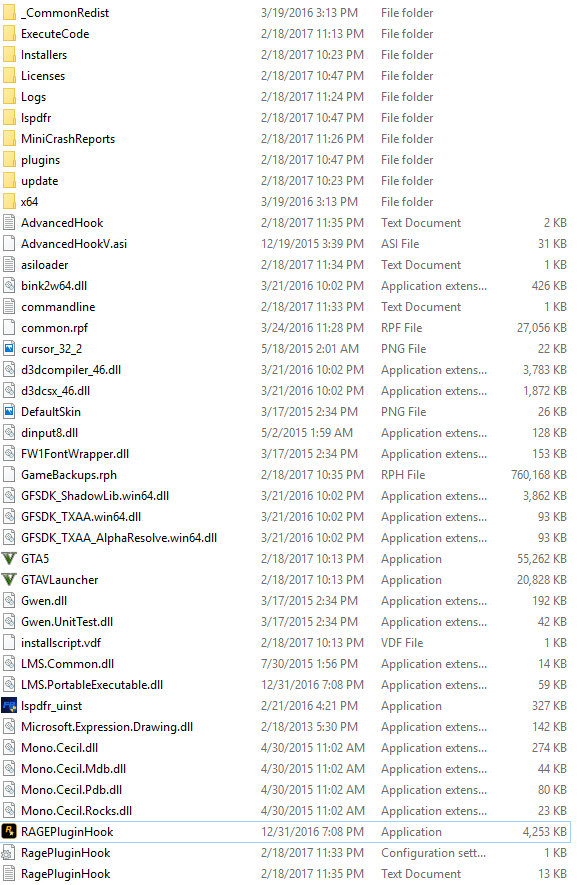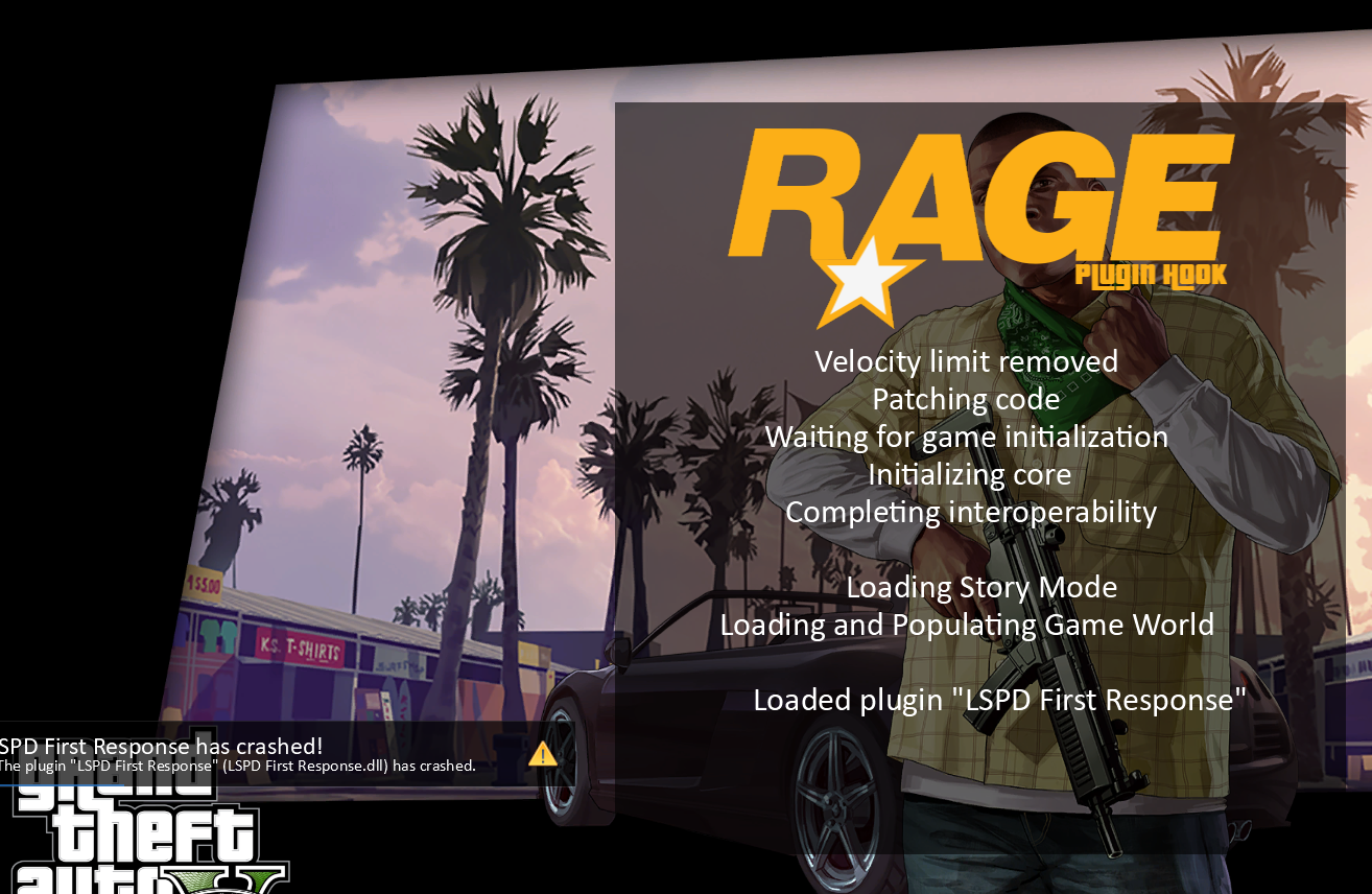 When I start the game, it loads ragehook fine. Once it gets to the populating world part I get a repeating popup error of LSPD FR failure to load the DLL or something to that extent. I'd take a screencap of that but shortly after 5-6 loops of this error GTAV locks up and I have to manually end GTA V as a task.