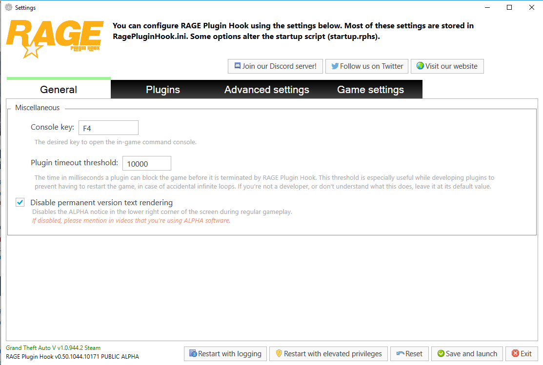 [2/18/2017 11:53:53 PM.917] Version: RAGE Plugin Hook v0.50.1044.10171 PUBLIC ALPHA for Grand Theft Auto V