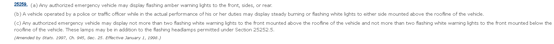 Notice how it does not state EMERGENCY vehicles require rear amber lighting. Only "Warning Vehicles" such as tow trucks or something like a Caltrans service vehicle.