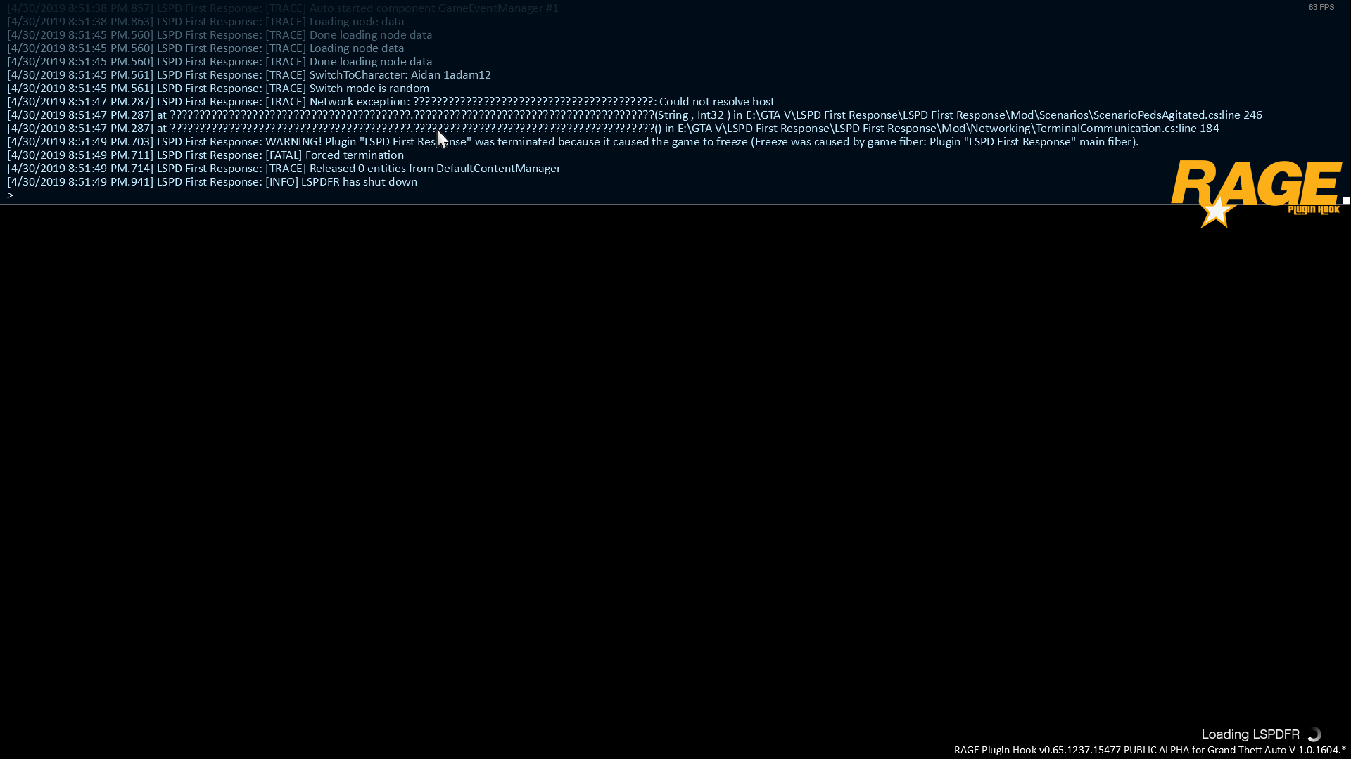Warning! Plugin "LSPDFR First Response" was terminated [PLS HELP]