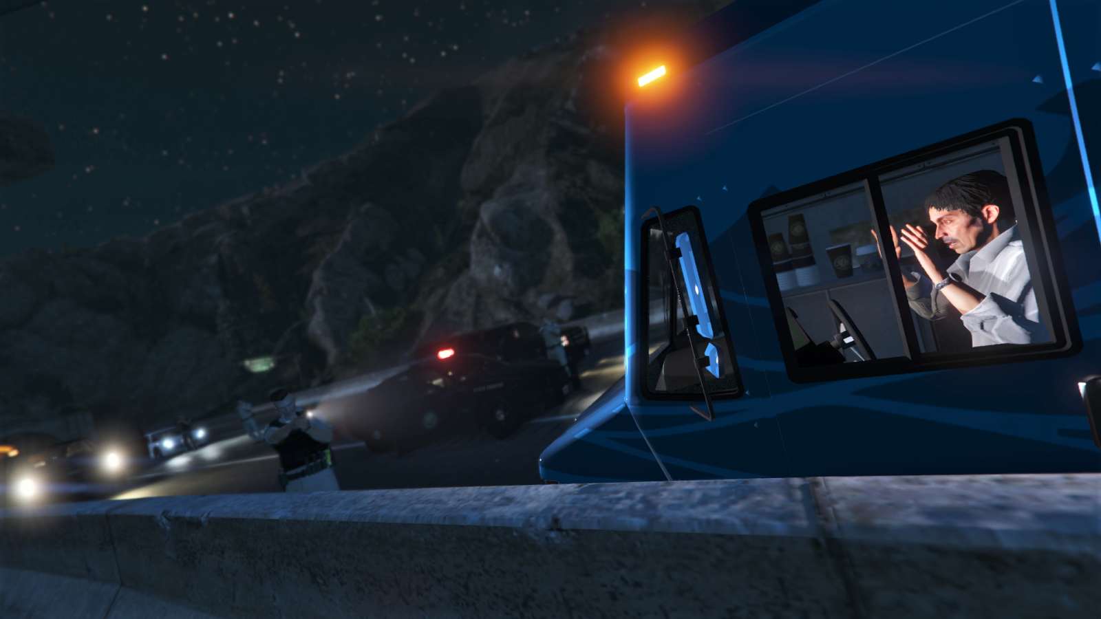 Funny thing is that this guy got stuck cos there's only one door to his vehicle. And said door was blocked.