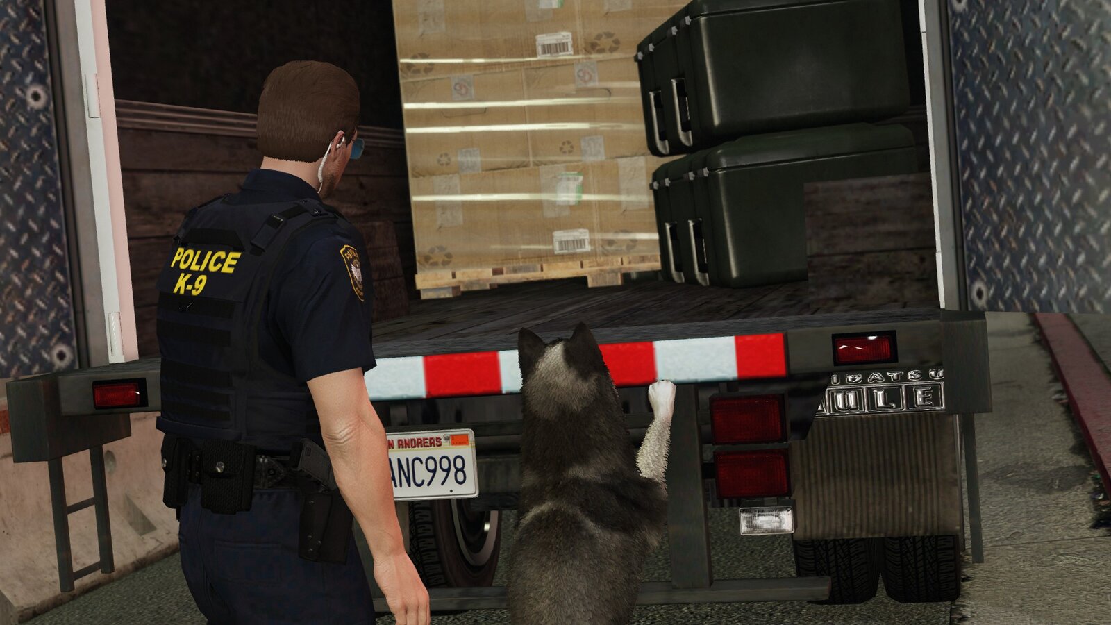 FIBP K-9 searching back of a truck