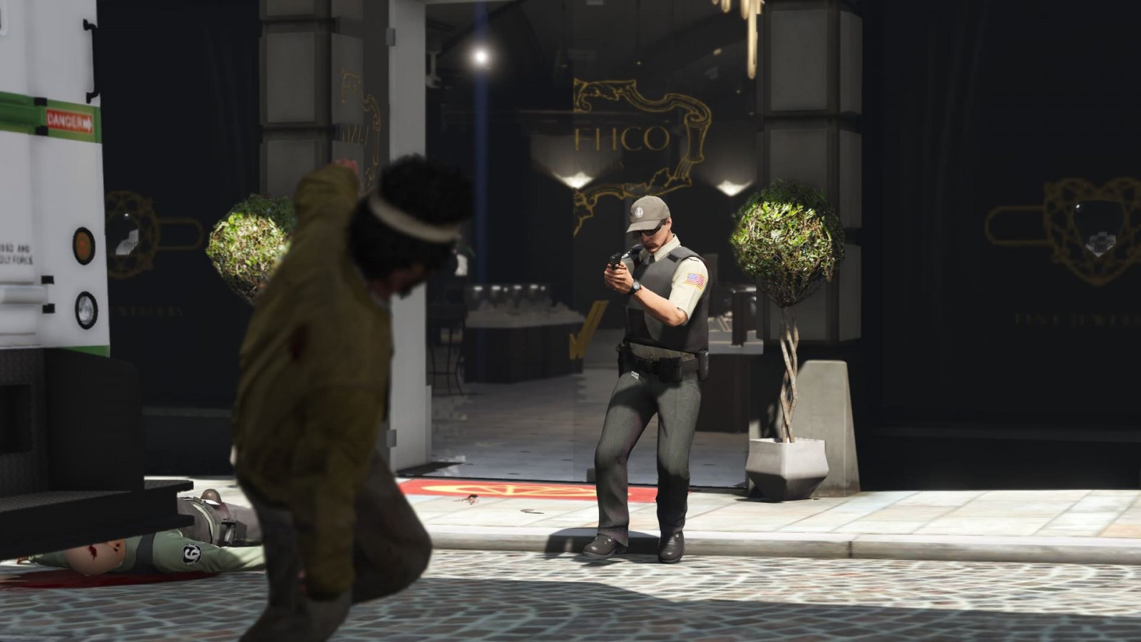 Attempted Hijacking @ Vangelico Share https://www.lcpdfr.com/gallery/image/129569-attempted-hijacking-vangelico/ Share on Facebook Share on X {lang="reddit_text" More sharing options... Followers One guard shot and killed, another guard sustaining gunshot wounds, one suspect shot and killed.