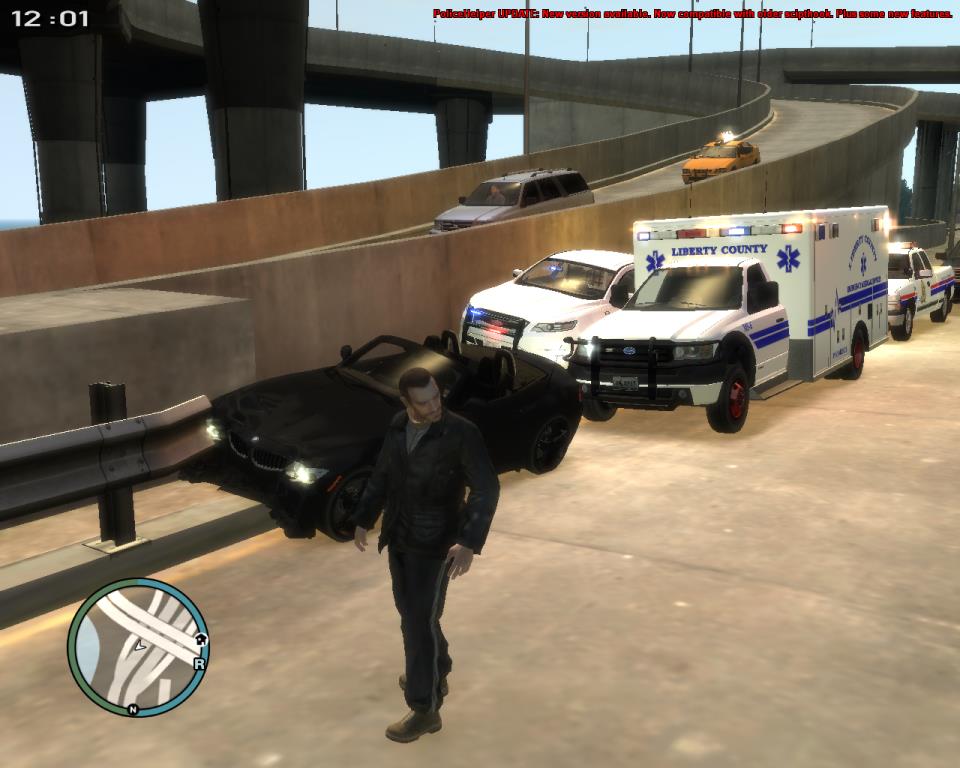 Here the BMW, Knight's vehicle, and Liberty City Ambulance can be seen